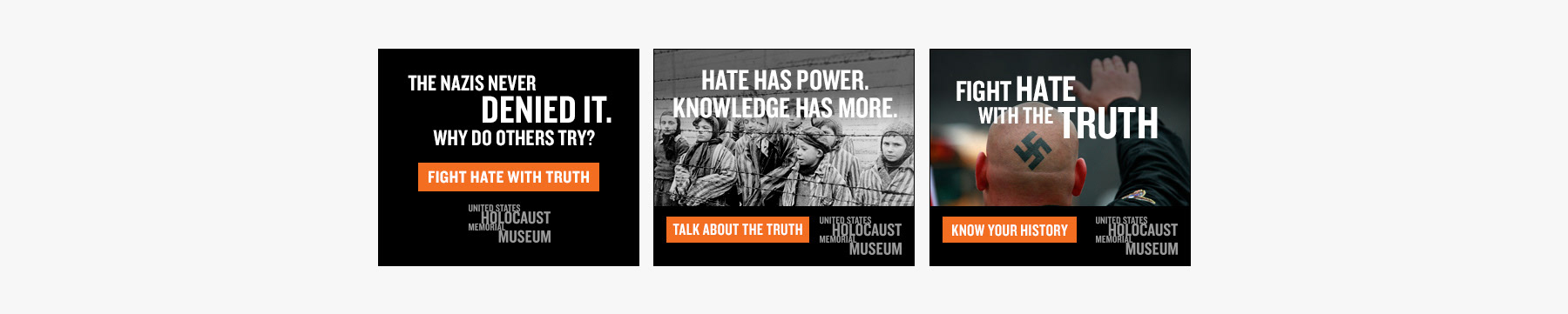 The Holocaust was one of the most documented events in human history. Yet there are still people today, motivated by hatred and antisemitism, who deny that it happened. The United States Holocaust Memorial Museum needed a way to educate the public about the dangers of Holocaust denial and inspire people to learn the facts. I worked with Leta Baker and the gang at Impatient Cow to build a multi-channel campaign that created awareness and engagement around this important issue.